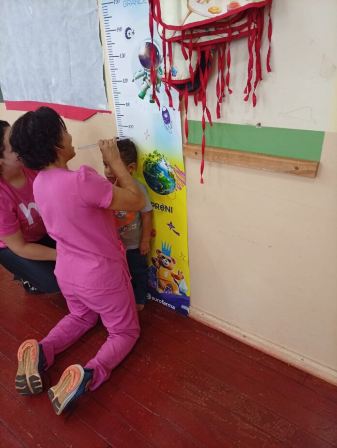 Sob a coordenação da enfermeira Shirley Felizardo, os alunos a ação denominada Antropometria, que dedica sobre o estudo das medidas e proporções do corpo humano.