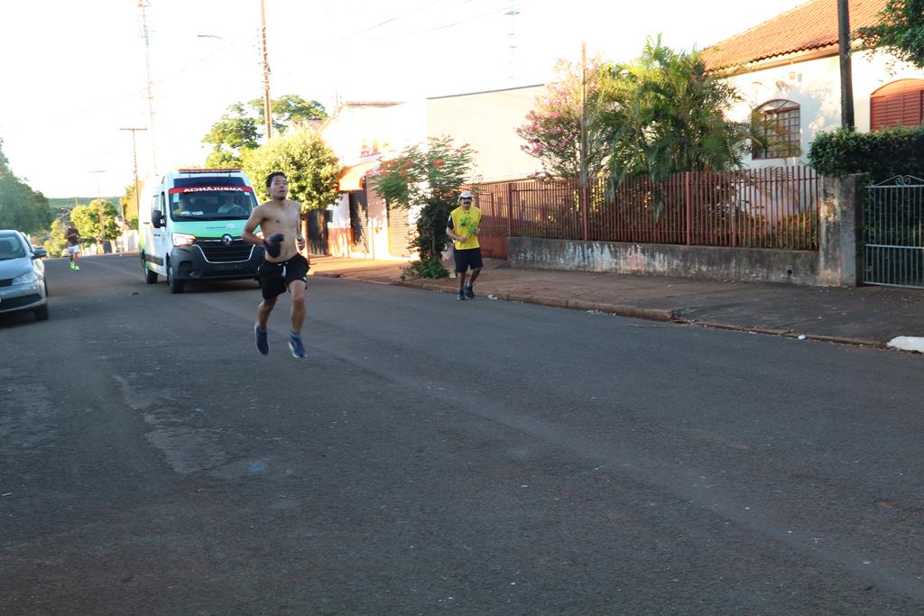 Uma ambulância do município acompanhou todo o percurso da corrida, com o apoio da equipe da Polícia Militar, que permaneceu em pontos estratégicos ao longo do trajeto.