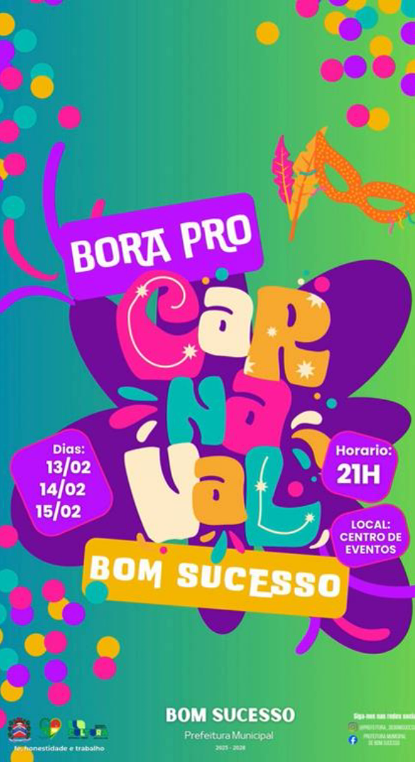 O Carnaval de Bom Sucesso começa nesta sexta-feira, 13 de fevereiro, e segue até domingo, dia 15. A comissão organizadora está otimista com a expectativa de público e acredita que o Centro de Eventos do município deverá receber um grande número de foliões durante os três dias de programação.