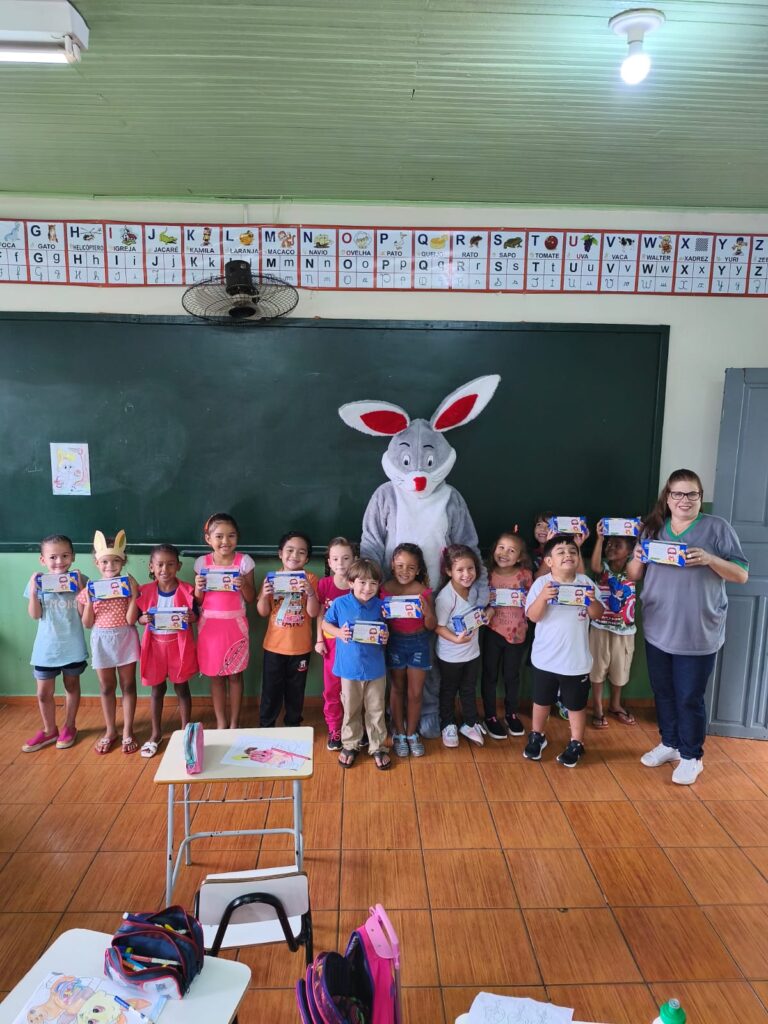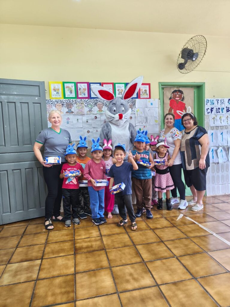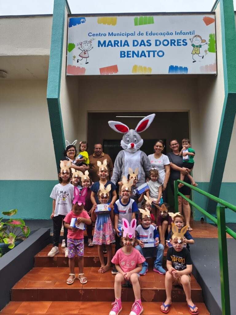 A iniciativa contemplou alunos e atendidos da Apae, da Creche Municipal e da Escola Municipal João Teixeira Marabolin, além de funcionários do município, que também receberam a lembrança em celebração à Páscoa.