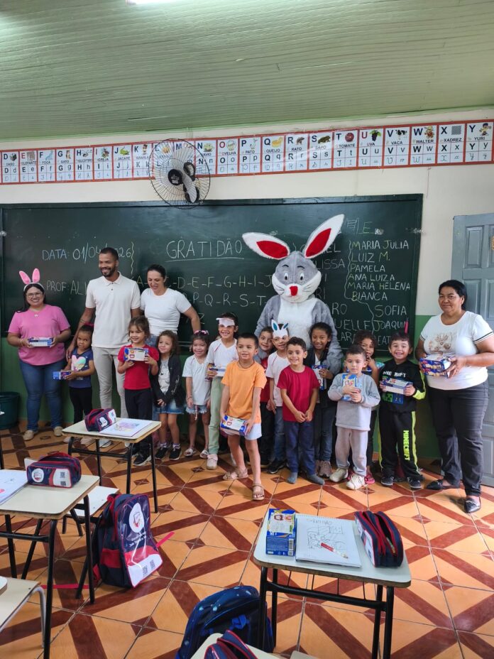 A iniciativa contemplou alunos e atendidos da Apae, da Creche Municipal e da Escola Municipal João Teixeira Marabolin, além de funcionários do município, que também receberam a lembrança em celebração à Páscoa.